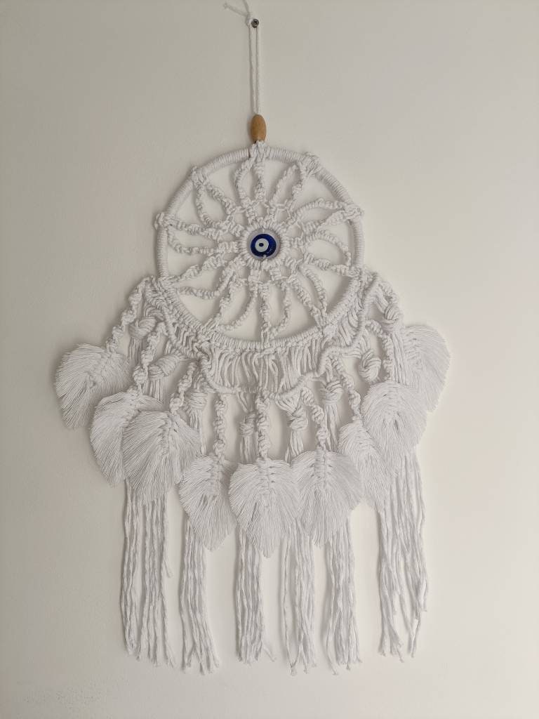 Houglye Evil Eye Dream Catchers White Dream Catcher For Bedroom Handmade Macrame Evil Eye Wall Hanging For Boho Room House Decor Protection Good Luck Blessing Festival Gift Home Kitchen Amazon Com